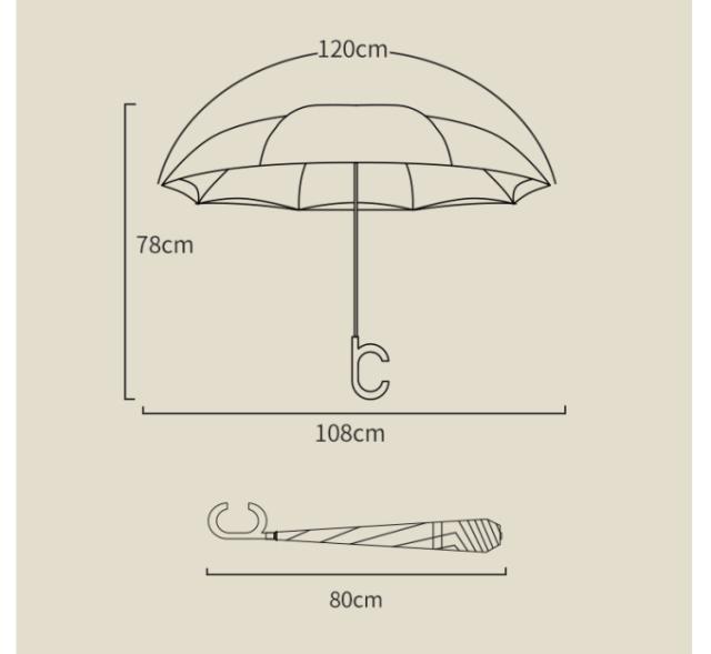 | サイズについての説明 | 全長:約80cm 開傘時直径:約108cm 重さ:約570g |