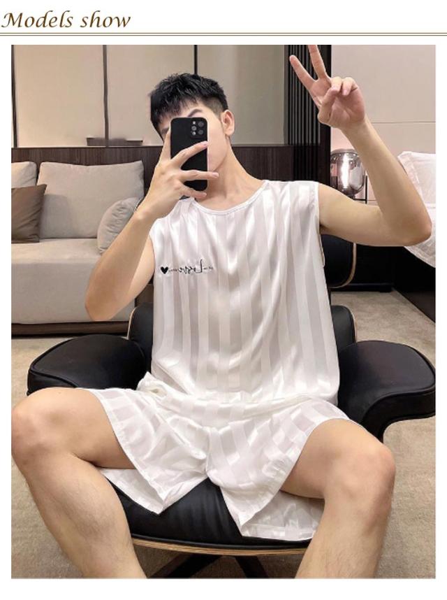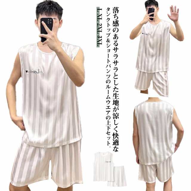 吸汗速乾 ルームウェア 夏 メンズ ストレッチ パジャマ 上下 ノースリーブ サテン パジャマ ひんやり 冷感 男性 ショートパンツ 涼しい 部屋着 タンクトップ 大きいサイズ 短パン 無地 寝間着 接触冷感 セットアップ ギフト 梅雨対策 UVカット 薄手 伸縮性