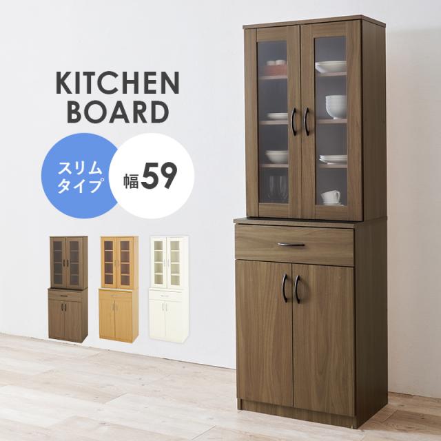 キッチンボード 59cm幅 スリムタイプ RCC1 ガラス扉 キッチン収納 レンジ台 食器棚 キッチンラック カップボード キッチンボード おしゃれ ダイニングボード 組立品 収納 収納棚