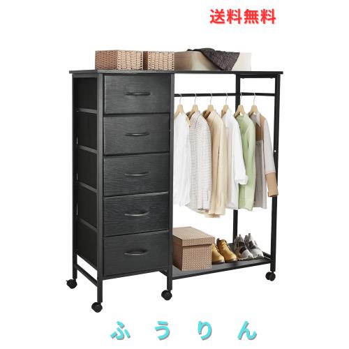 ハンガーラック 引き出し付き ワードローブ シングル チェスト キャスター付き ハンガー ラック 幅102×奥行40×高さ112cm 組立品 2年安
