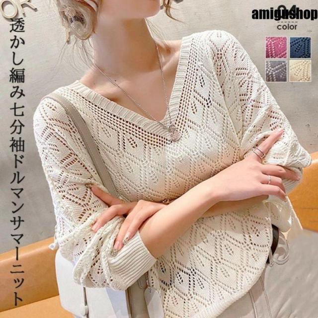 透かし編みサマーニット レディース サマーニット カギ編み