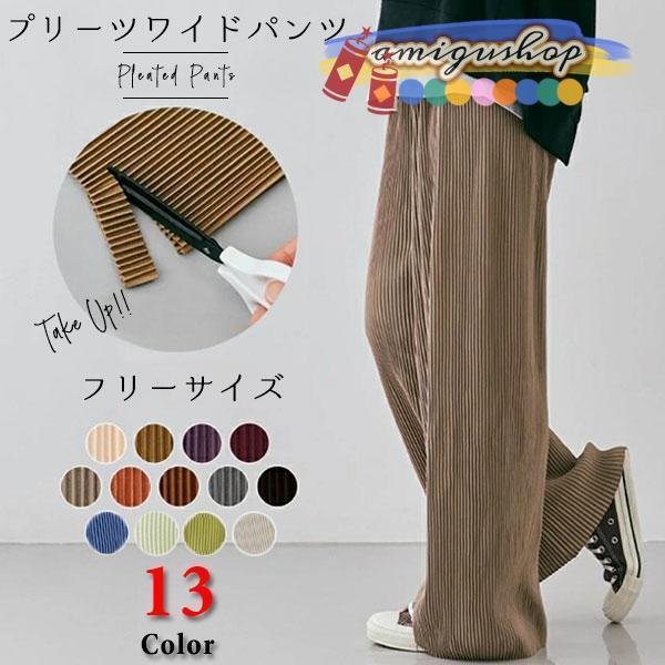 プリーツワイドパンツ セルフカット プリーツ ワイドパンツ レディース ストレッチ ハイウエスト ドレープ ストレート パンツ ワンマイルウェア 春 夏 秋 冬