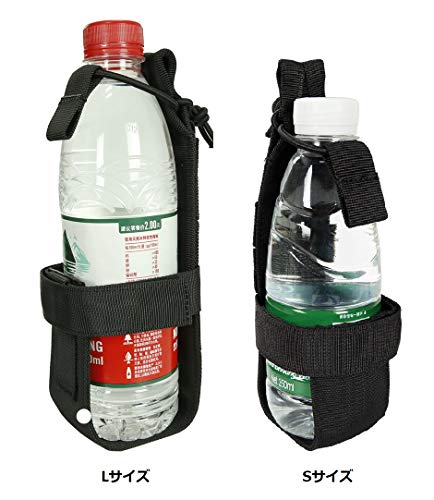 デザイン:背面にモールストラップ付きで、モール対応したバックパック、ベルト、ベストに取り付ける可能で、持ち運びには手軽です。面ファスナー式のベルトがサイズに合わせて調整可能です、いろんな直径のペットボトルや水筒が対応できます。上端のゴムバンドは自由に結束でき、安定感があります。
