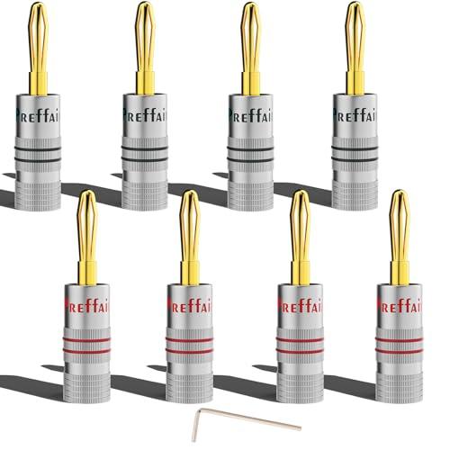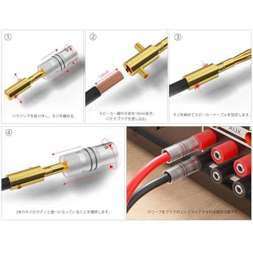 24K 金メッキ バナナプラグ 8個 ダブルスクリュー固定 赤4個 黒4個 12-18AWGスピーカーケーブル用 自作スピーカーケーブル用