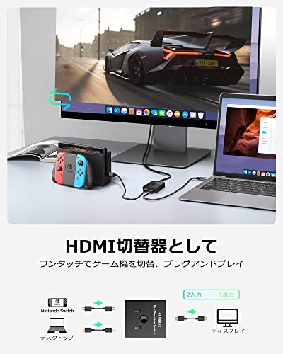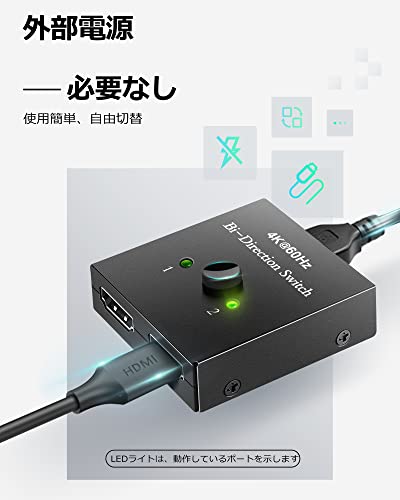 HDMI切替器 HDMI 分配器 4K 60Hz HDMI 切り替え器 / セレクター 双方向 1入力2出力 / 2入力1出力 電源不要 HDCP 2.2 HDMI2.0 手動 モニター / ディスプレイ切替 [DVDプレーヤー / PS3 / PS4 / PS5 / Switch / Fire TV Stick / Chromecast / Xboxに適用]
