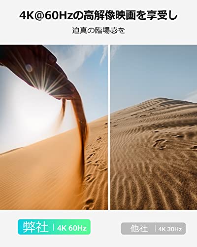 【4K@60Hz高解像度】この4K HDMIスイッチャーは、4K@60Hzに対応し、2K/1080Pに下位互換性があり、3D 表示が可能です。標準HDMI 2.0ケーブル(最大5m)を使用して、4K伝送を遅延なく実現します。自宅にいながらライブ会場にいるような臨場感を実現。