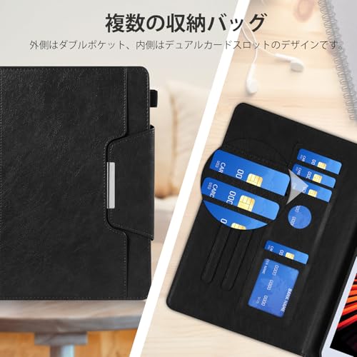 iPad 10.2インチ ケース ソフト フォリオカバー 耐衝撃 iPad air3 ケース iPad 10.2 タブレットケース アイパッド ケース 第9世代 内側はマイクロファイバー 傷防止 ひび割れ防止 耐久性全面保護 iPad 10.2 ケース 2019 / 2020 / 2021 iPad 9世代 ケース 絵描き角度 iPad 8 ケース iPad Pro 10.5 ケース ブラック