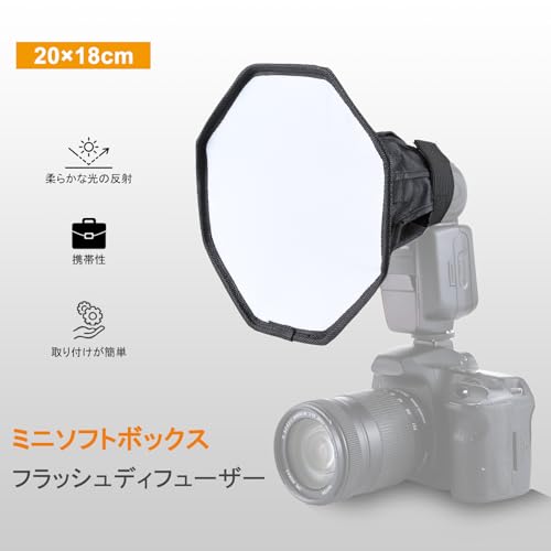 ストロボディフューザー フラッシュソフトボックス 近距離撮影用 フラッシュディフューザー 八角形 ストロボソフトボックス 折りたたみ式 スピードライト ディフューザー 持ち運びやすい カメラディフューザー 小型ストロボミニソフトボックス 静物写真&人物 ...