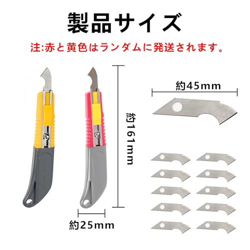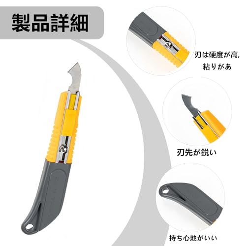 【 カッター 替刃 10枚付き】この カッターナイフ には カッター 替え刃 が10枚付属しており、刃の交換がより便利になります。 刃はフックナイフの先端に収納できるので、保管や取り外しが簡単です。