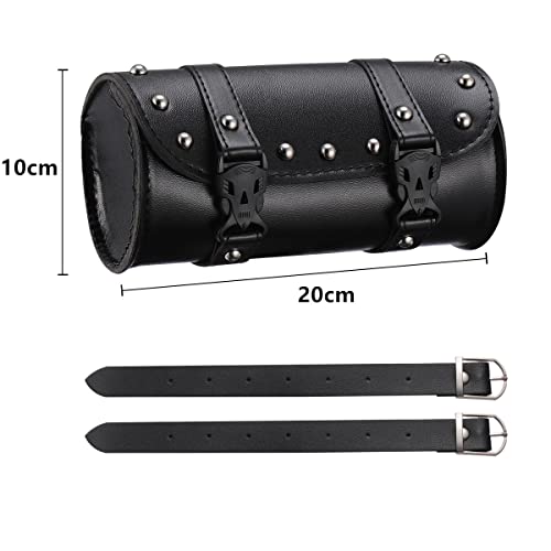 バイク ミニツールバック スタッズ付き PUレザー 収納バッグ 小物入れ 自転車 バイク フロントバッグ 取付簡単 ハンドルバッグ 汎用 防水 (ブラック)