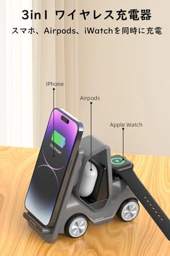 ワイヤレス充電器 3in1 iPhone / Apple Watch / Airpods充電器 アイフォン15 / 14 / 13 / 12 / 11シリーズ / Galaxy / Huawei / AirPods Pro / 3 / 2 / アップルウォッチに対応 置くだけワイヤレス充電器 15W / 10W / 7.5W / 5W 同時に3デバイス充電 (USB-Cケ...