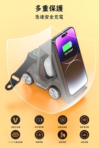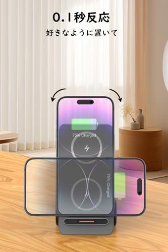 【幅広い互換性】ワイヤレス充電スタンドは3つのデバイスに対応して、Appleデバイスだけでなく、HuaWei、SamSung、XiaoMi、HONORとも互換性があります。このマルチ充電器はiPhone 15/14/13/12/11/Pro/Max/XS/XR/X/8/Plus、Apple Watch 8/7/6/5/4/3/2/SE、AirPods 3/2/Proなどをすばやく効率的に充電します。