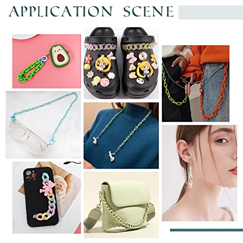幅広い用途:カラフルのプラスチックチェーンは、ネックレス、ブレスレット、イヤリングなどのアクセサリー作りには最適です。ドレスデコレーション、メガネにも使われています。