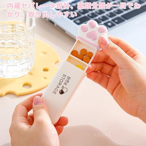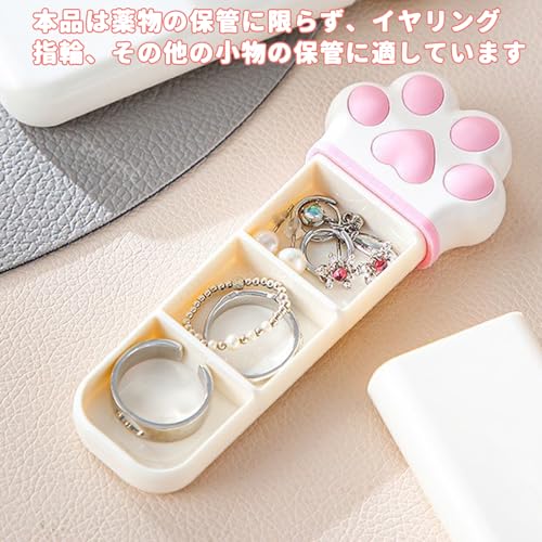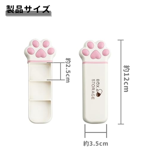 ピルケース 携帯用 猫の爪型 薬ケース 1日3回 サプリケース 小型 薬飲み忘れ防止 小物入れ 防水 収納ポケット 薬入れケース 持ち運び便利 出張 旅行(ピンク) 送料無料