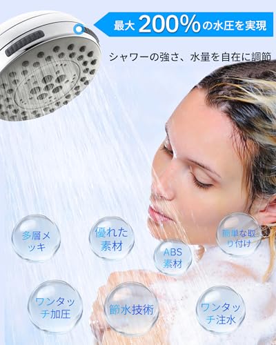 当社のシャワーヘッドは、強力なウォータープレッシャーにより、高水圧なシャワーを実現します。従来のシャワーヘッドよりも水圧を実現し、シャワーの強さや水量を自由自在に調節できます。
