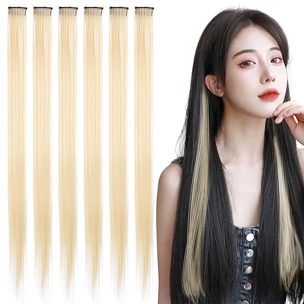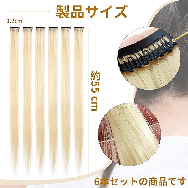 ウィッグ エクステ ワンタッチメッシュエクステ 6本セット単色 ワンタッチ ストレート ポイント メッシュ クリップ式 エクステ 日常 チア ダンス 発表会 パーティー ファッション(金髪)
