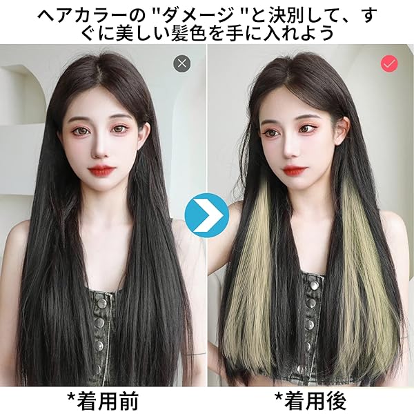 【おしゃれ】気分を転換したいとき、髪全体を染めずに、この一本だけを使えば、オリジナルのヘアスタイルは完成します。おしゃれも、遊び心もあります。このウィッグは軽くて自然で自毛の境目も違和感なく馴染みます。光沢感もあって、よく調整すると自然な感じになります。ヘアサロンに行かなくても個性的な髪型と変わってきた。