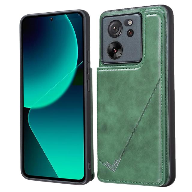 【 Antimam 】背面カード 手帳型ケース 対応 Xiaomi 13T/13T Pro ランヤード付 スマホバック?カバー( ダークグリーン )手作り お洒落シ
