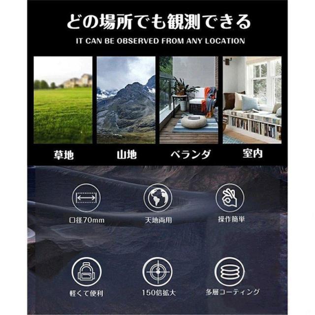 最大150Xまでの望遠が可能となりますので、レンズの組み合わせによって遠くまで観測できます。