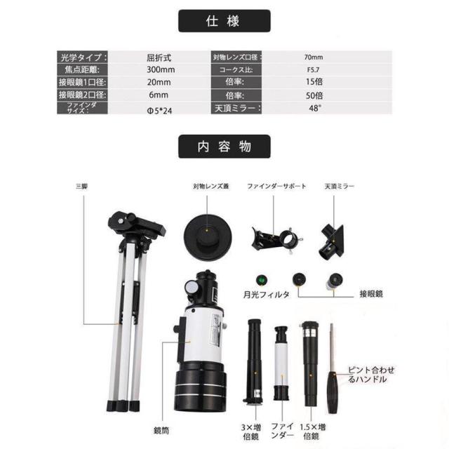 天体望遠鏡 天体観測 18-270倍ズーム スマホ撮影 屈折式 望遠鏡 三脚付き 天体 初心者 子供用 小学生 流れ星 宇宙 自然 動物 流星群 月 興味の育成 ギフト
