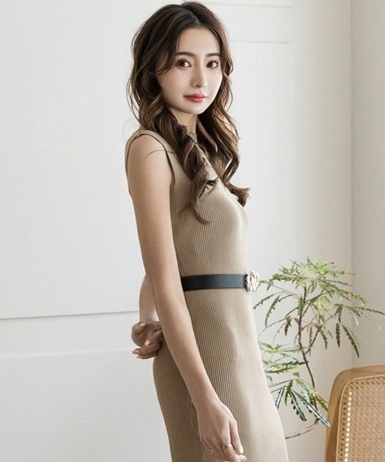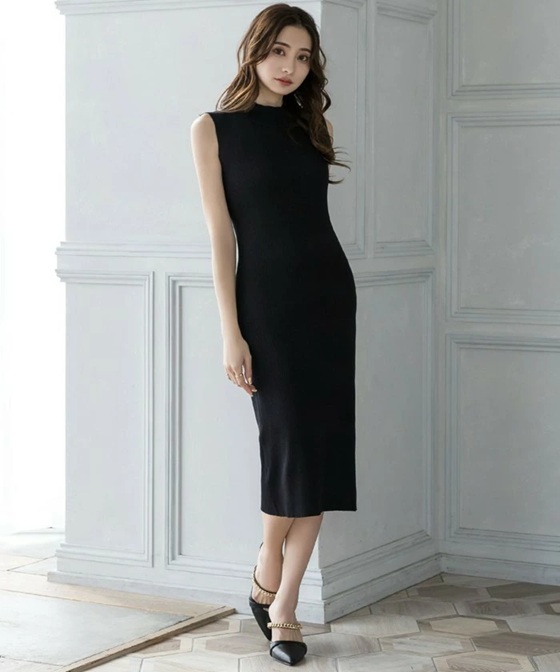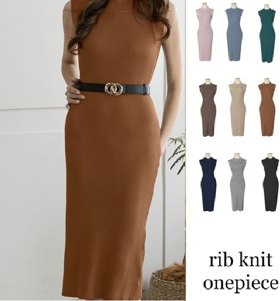 リブ ニット ワンピース ノースリーブ ロング きれいめ タイトワンピース ワンサイズ ニットワンピース ロングワンピース ノースリーブワンピース タイトワンピース 10代 20代 30代 40代 50代