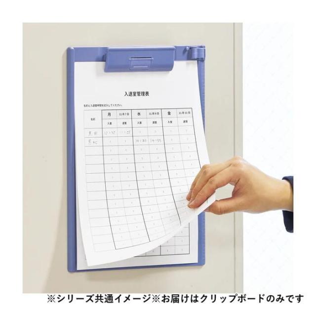 | 定番のクリップボードにマグネット付きが新登場。事務所や学校の備品に。裏面2カ所にマグネット付き。スチール面に貼り付けて使える。裏面に吊り下げ穴付き。フックに吊り下げて使用することも可能。立ったままの記入がしやすいしっかりしたボード面。書きやすく手が疲れにくい特殊エンボス加工。クリップの先端にラバーチップ付きで書類の保持力に優れたクリップ。 用紙がとじやすいロック機構付き。 クリップを開くとレバーが起き上がり、開いた状態でロックします。 用紙がきれいにそろうサイドストッパー。5mmピッチの目盛付き。 ボールペンなどをしっかり保持するペンホルダー。 ※軸径7.5mm〜11mmまで対応。 鉛筆やボールペンの紛失を防ぐペンキーパー(A-538(別売))を取り付け可能なジョイントビット。 |