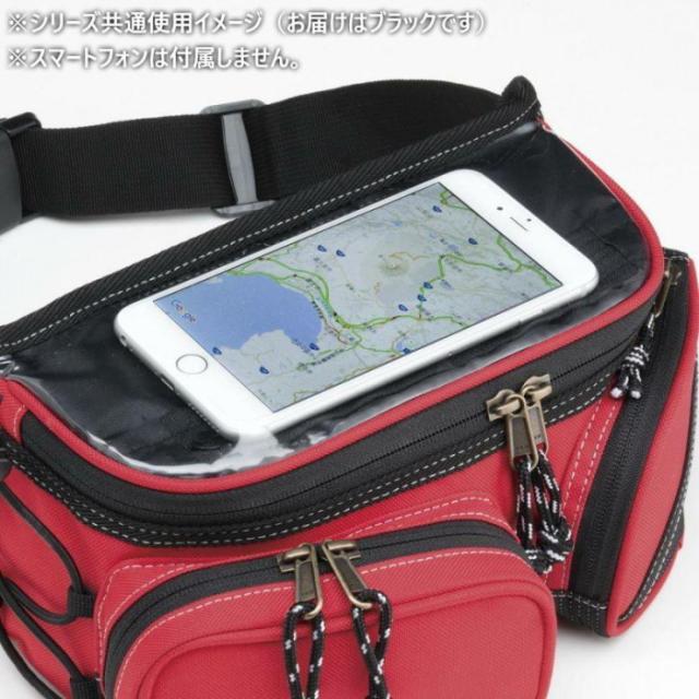 | 5.5インチのスマホを収納できる上部クリアポケット。前面に2つ装備されたファスナー付きのポケットは、厚みのあるアイテムも収納可能。容量2.6Lという普段使いにジャストなサイズ。体に触れる背面にメッシュ素材を採用し、サマーシーズンの蒸れを防止。内部に2つのポケットを装備し、小物の収納も容易に。大型スライダーは、グローブをはめた状態でも使いやすい。グローブや小物などを挟めるドローコードを装備。 サイドのカラビナは、デザインと機能性を両立。 |