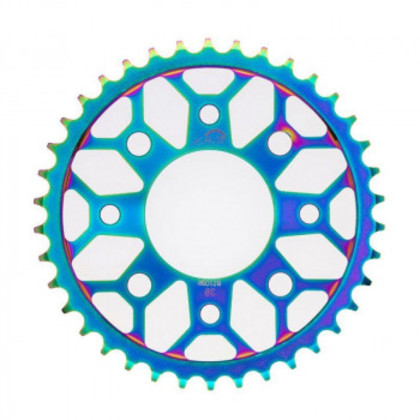 商品詳細:ミニバイク用タフライトスチールスプロケットは、強度に優れる鋼鉄材料に大胆な肉抜き加工を施し、色鮮やかな特殊メッキ加工で注目度抜群です。 生産国:中国 素材・材質:鋼鉄 仕様:カラー:特殊メッキ歯数:38T【適合車種】・GROM(JC61/JC75/JC92)・DAX125(JB04)・モンキー125(JB02/03)・カブ 110(JA07/10)