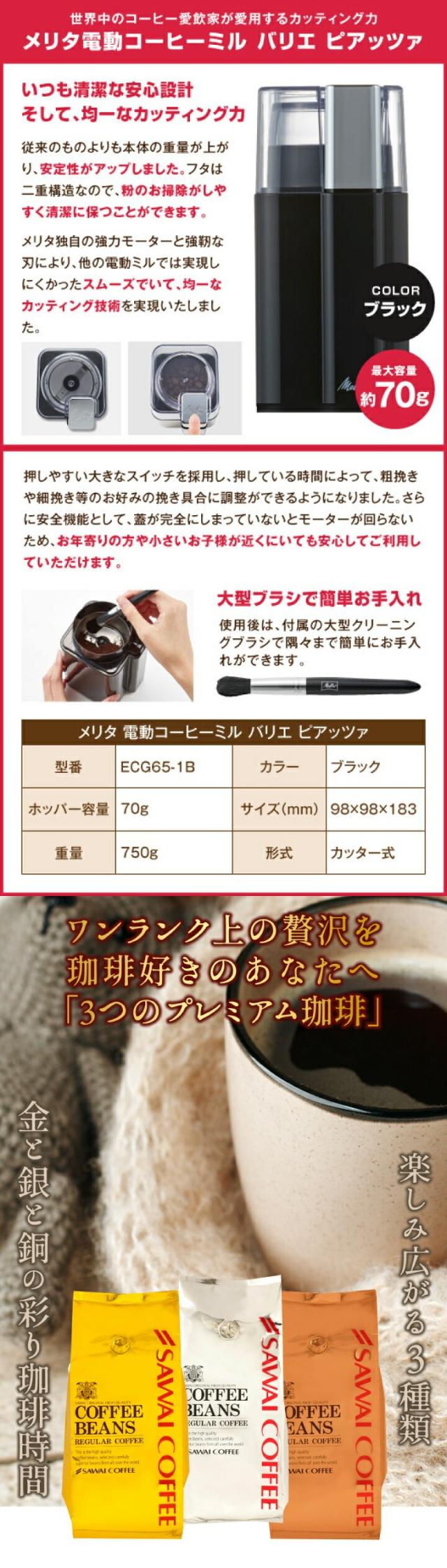 | 商品名 | メリタ電動ミルと金・銀・銅ブレンドの福袋セット |