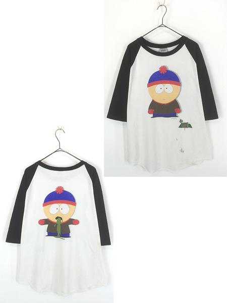 古着 90s USA製 SOUTH PARK サウスパーク スタン マーシュ 両面 プリント 7分袖 ラグラン Tシャツ L 古着