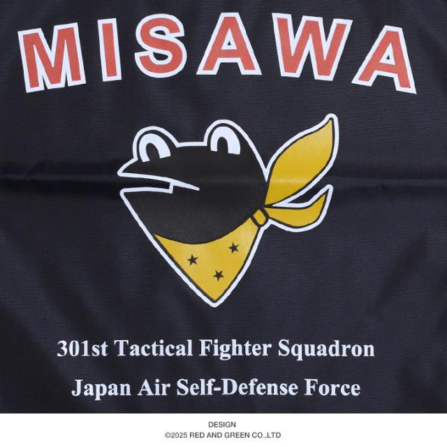 部隊マークのケロヨン(カエル)と共に、三沢基地を意味する『MISAWA』のアーチロゴを刻印。日本の工場による安心の高品質プリント。