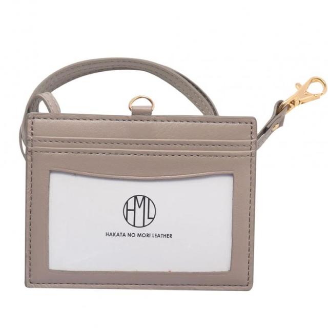 HAKATA NO MORI LEATHER 本革 両面 クリア IDカード ホルダー 透明 首掛け 2枚収納 横 ストラップ付き ケース 社員証 定期入れ 名刺 メンズ レディース (ベージュグレー(アール窓))