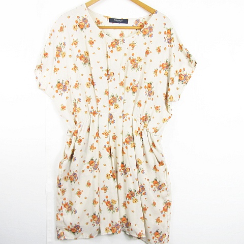 【中古】チャオパニック CIAOPANIC Find your Real Life シフォン ワンピース 膝丈 半袖 M ベージュ 花柄