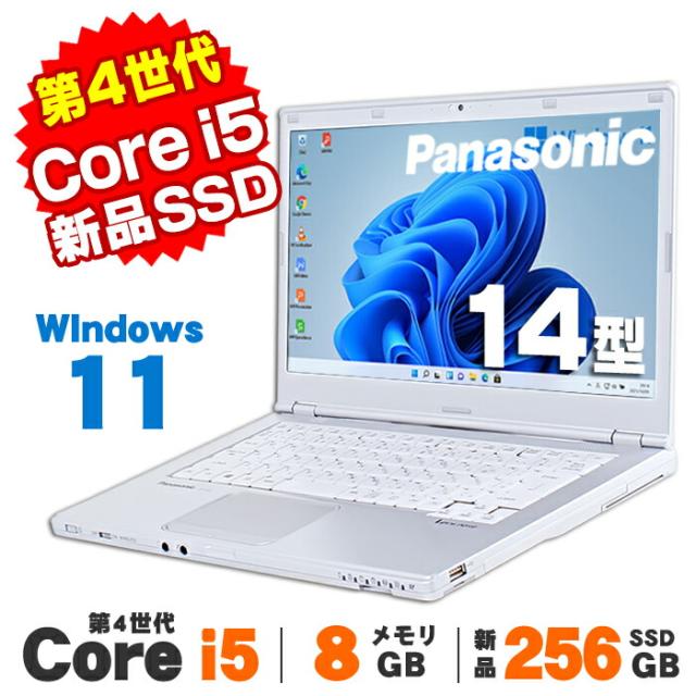 【AIかんたんPC】ノートパソコン 中古 Webカメラ Panasonic Let's note CF-LX3 14インチ 第4世代 Core i5 4210U以上 メモリ8GB 新品SSD256GB DVDROM Bluetooth Windows11 Pro Office付き 軽量 モバイル レッツノート