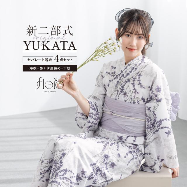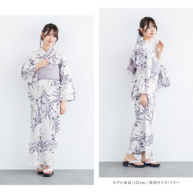 浴衣 セット レディース 二部式 セパレート 浴衣セット 兵児帯 2025 floro 簡単 悩まない 涼しい 吸水速乾 紫 グレー ラベンダー 大人 おしゃれ 可愛い 下駄 フリー 送料無料