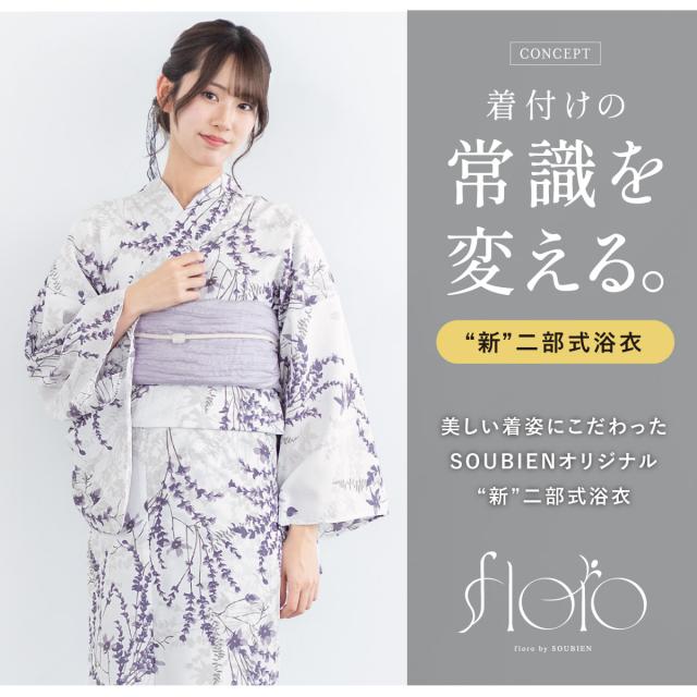 SOUBIENのプライベートブランド『floro by SOUBIEN』(フローロ)の女性用セパレート浴衣4点セットです。