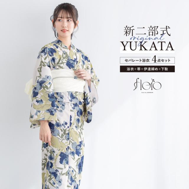SOUBIENのプライベートブランド『floro by SOUBIEN』(フローロ)の女性用セパレート浴衣4点セットです。