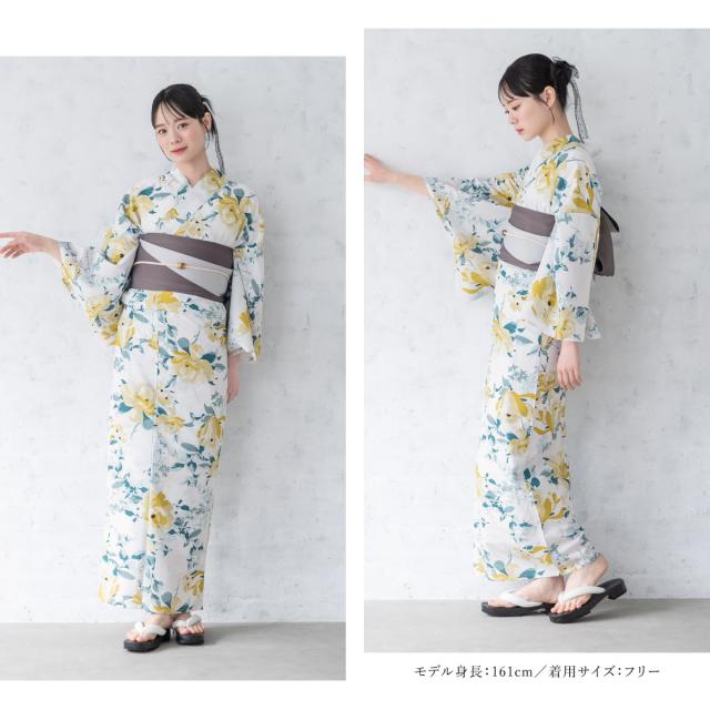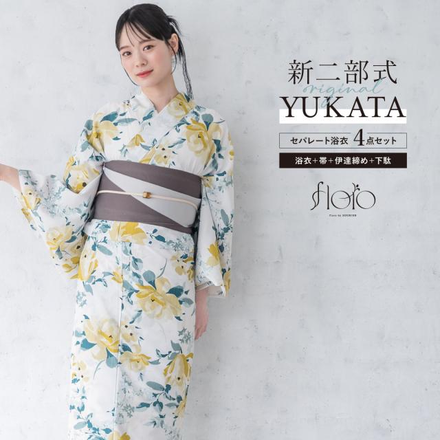 浴衣 セット レディース 二部式 セパレート 浴衣セット 半幅帯 2026 floro 簡単 悩まない 涼しい 吸水速乾 白 黄色 グレー 薔薇 大人 おしゃれ 可愛い 下駄 フリー 送料無料