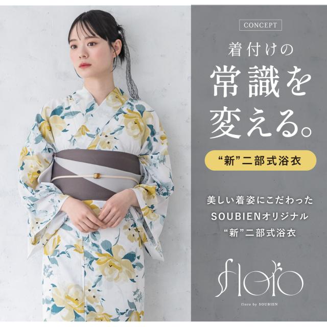 SOUBIENのプライベートブランド『floro by SOUBIEN』(フローロ)の女性用セパレート浴衣4点セットです。