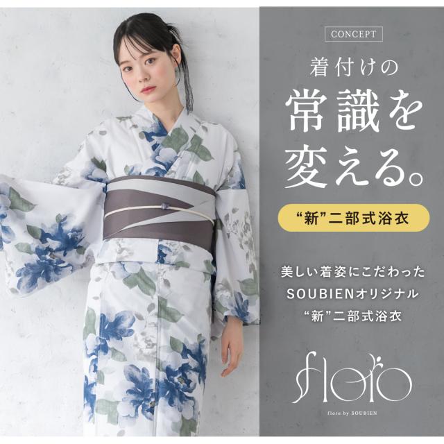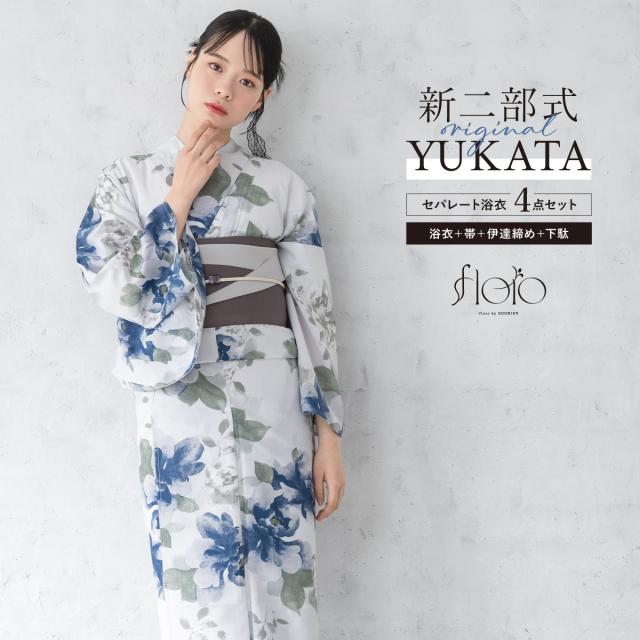SOUBIENのプライベートブランド『floro by SOUBIEN』(フローロ)の女性用セパレート浴衣4点セットです。