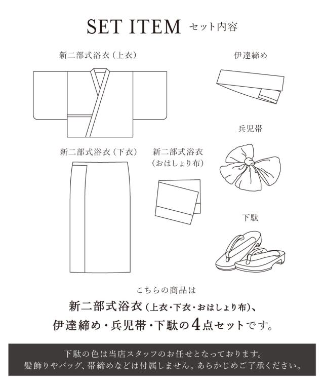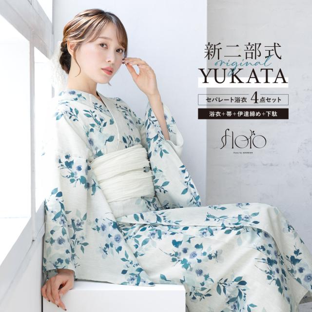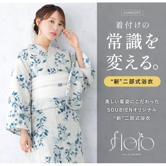 SOUBIENのプライベートブランド『floro by SOUBIEN』(フローロ)の女性用セパレート浴衣4点セットです。