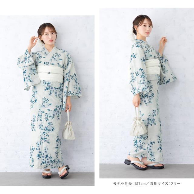 浴衣 セット レディース 二部式 セパレート 浴衣セット 兵児帯 2025 floro 簡単 悩まない 涼しい 吸水速乾 白 水色 青 大人 おしゃれ 可愛い 下駄 フリー 送料無料