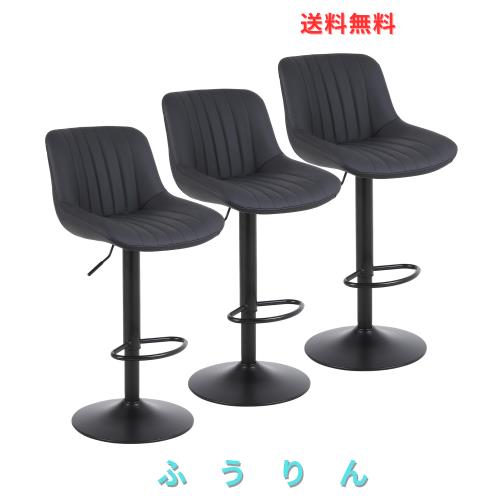 Youhauchair カウンターチェア 3脚セット 背もたれ ハイチェア 調節可能 回転バーチェア 足置き 昇降式ハイチェア フェイク PUレザー キ