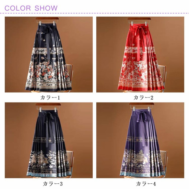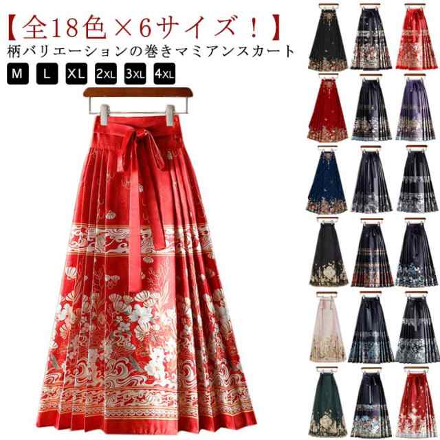 唐装漢服 マミアンスカート レディース ロングスカート チャイナ服 おしゃれ プリーツスカート ラップスカート 巻き 【M-4XL!】巻きスカート スカート 【M-4XL!】巻きスカート エスニック 古代 中華服 コスプレ衣装 復古風 写真撮影 中国宮廷風 春 夏 秋