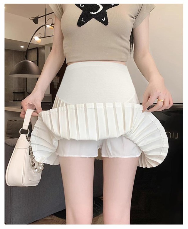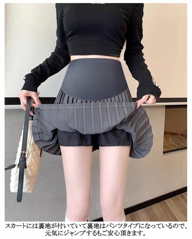 送料無料 脚長 産後 ミニスカート プリーツスカート 膝丈 インナーパンツ付き 産前 マタニティ スカート 調整可能 美脚 春夏 着痩せ ショートスカート 妊婦服 上品 エレガント 大人可愛い 無地 送料無料 オフィス