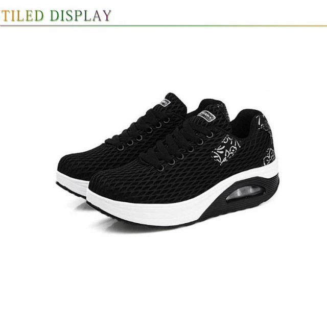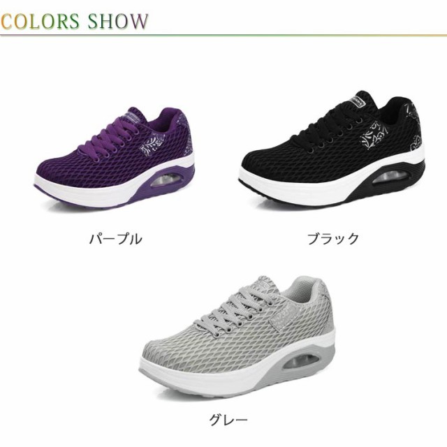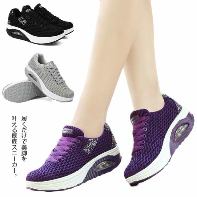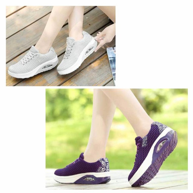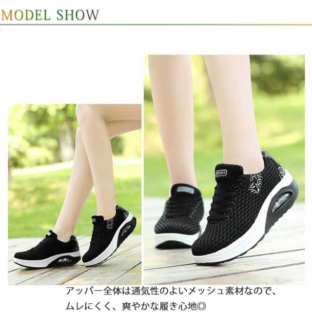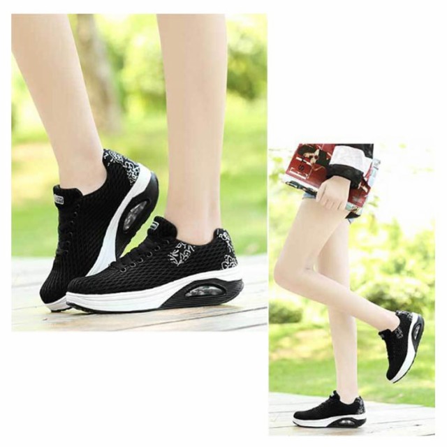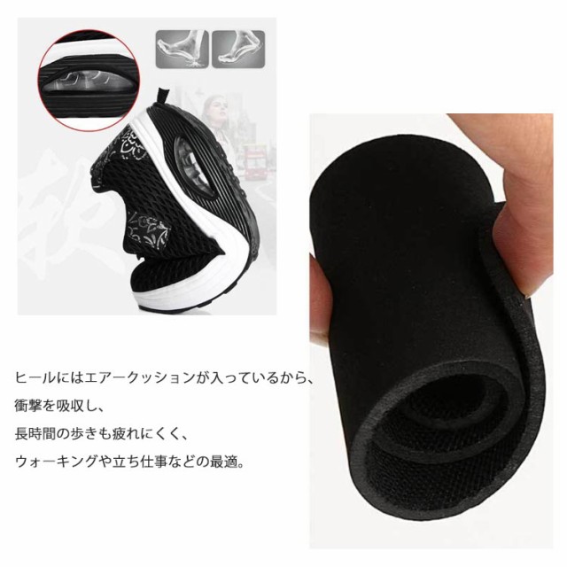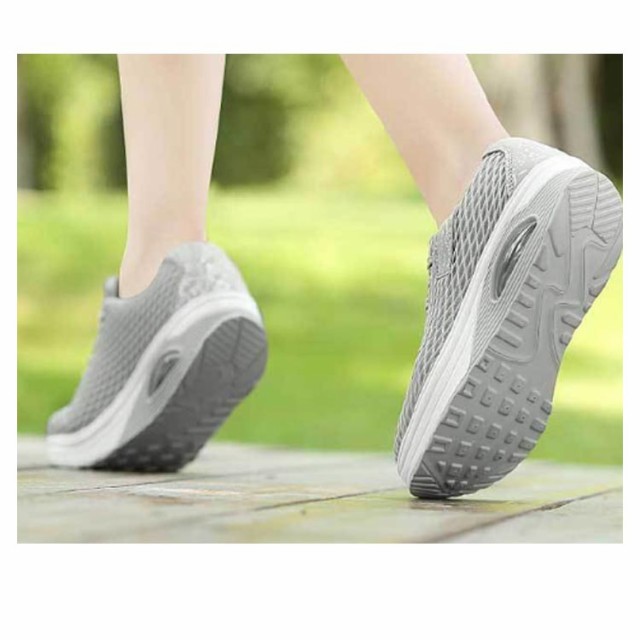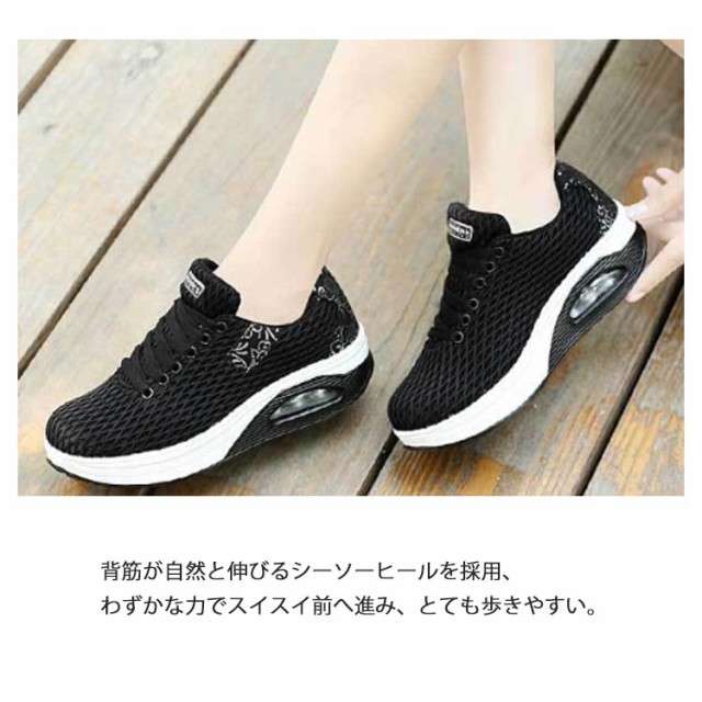 | 履くだけで美脚を叶える厚底スニーカー。 背筋が自然と伸びるシーソーヒールを採用、わずかな力でスイスイ前へ進み、とても歩きやすい。 ヒールにはエアークッションが入っているから、衝撃を吸収し、長時間の歩きも疲れにくく、ウォーキングや立ち仕事などの最適。 アッパー全体は通気性のよいメッシュ素材なので、ムレにくく、爽やかな履き心地◎ | |