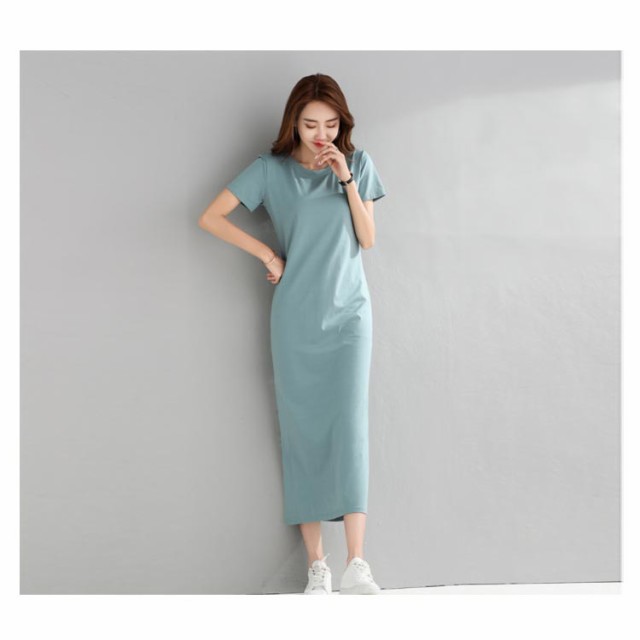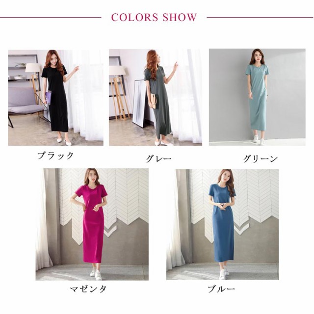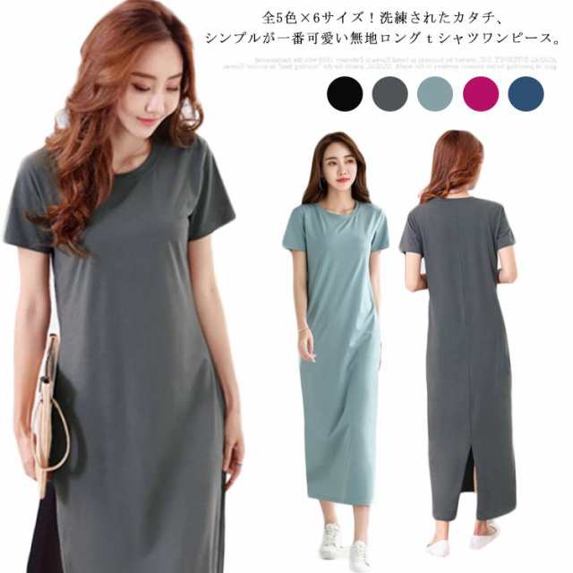 全5色×6サイズ!ロングtシャツワンピース ワンピース ワンピ tシャツワンピース コットンワンピース 半袖 夏 カジュアルワンピース カットソー素材 シンプル 無地 春夏 夏 新作 送料無料