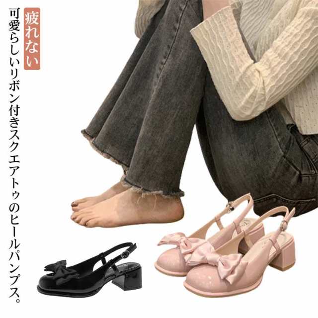 ミュール パンプス リボン付き レディース ミュールサンダル 大人可愛い ミュールパンプス バックストラップ ミュール サンダル 前詰まり スクエアトゥ 5cm ヒール 春 夏 シューズ 靴 歩きやすい 疲れない おしゃれ
