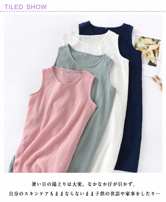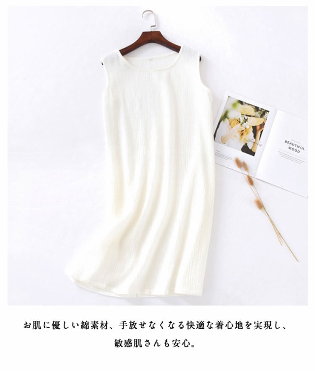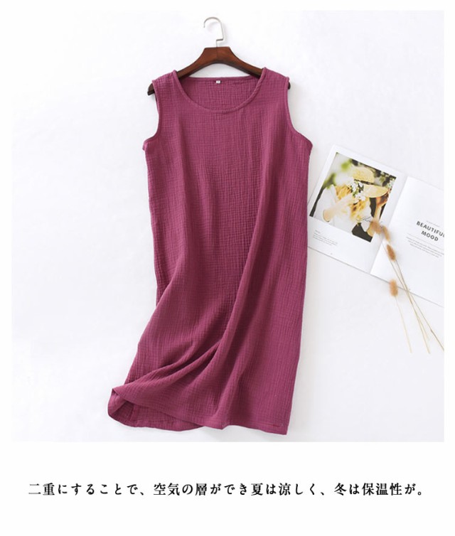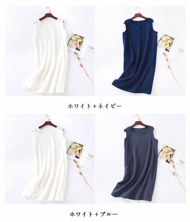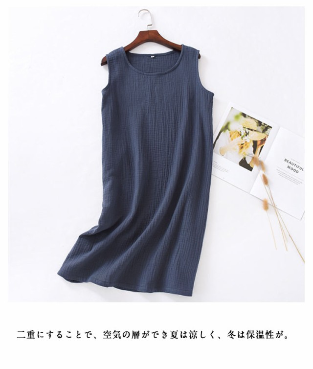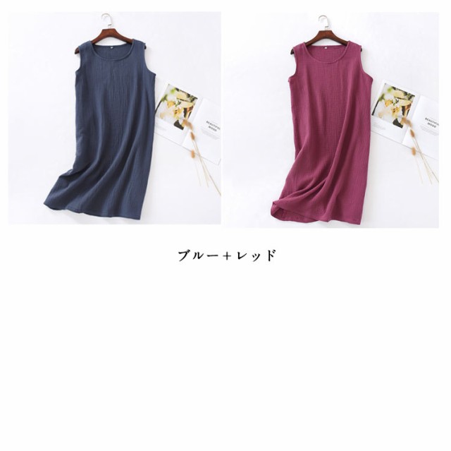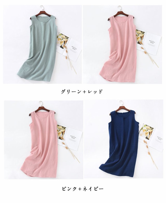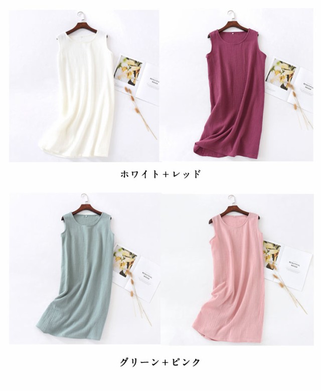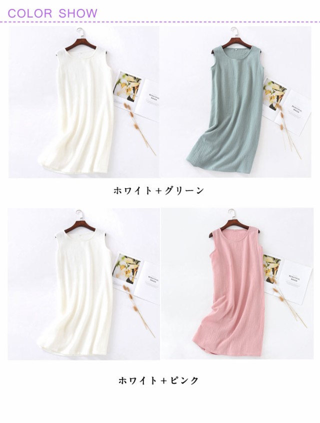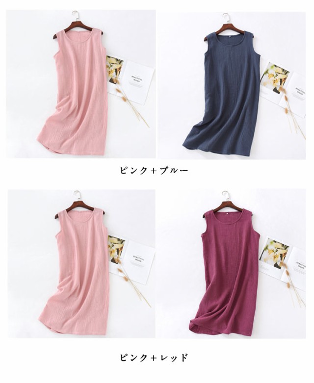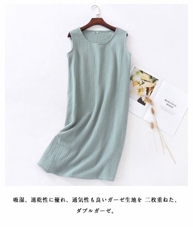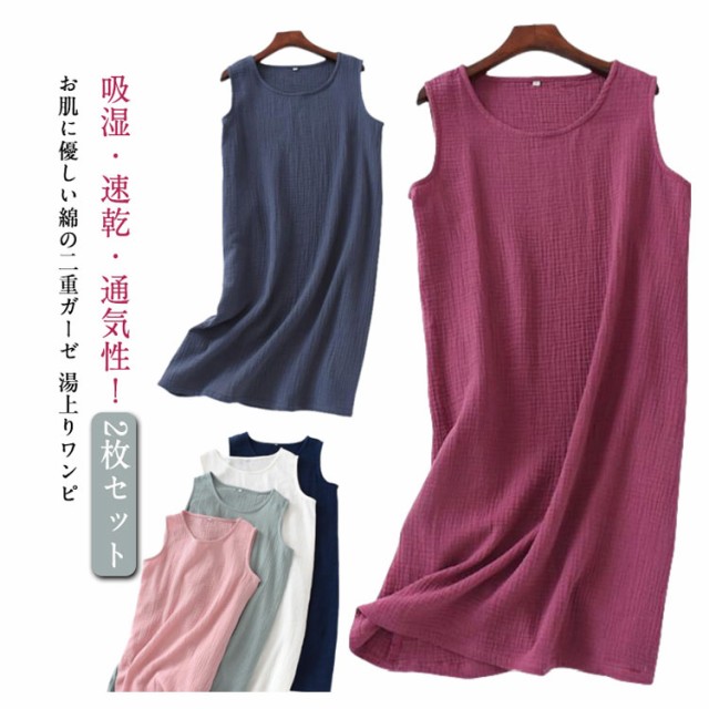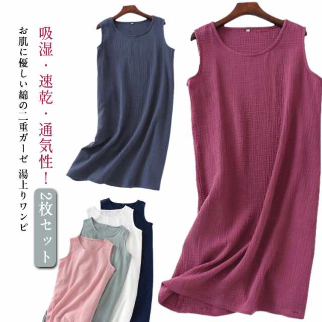 インナーワンピ ネグリジェ ノースリーブ 部屋着 ルームウェア 湯上り レディース ガーゼ ルームワンピース ワンピース 綿 ガーゼ 寝巻き ワンピ 膝丈 ナイトウェア パジャマ 夏 2重ガーゼ ガーゼパジャマ コットン 【2枚セット】ダブルガーゼ