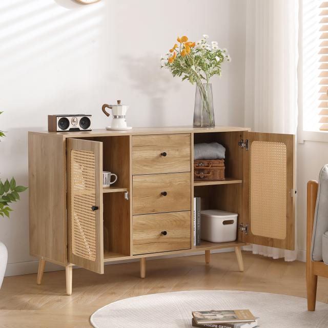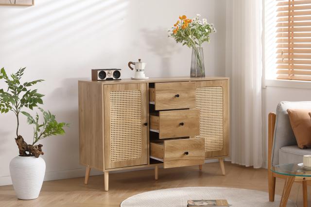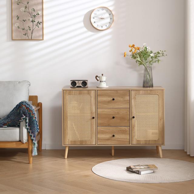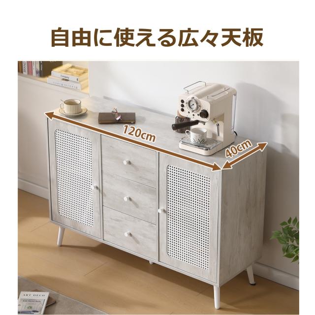 リビング収納 キャビネット リビング サイドボード ラタン風 収納チェスト2段 収納棚 大容量 サイドボード 扉付き おしゃれ 北欧